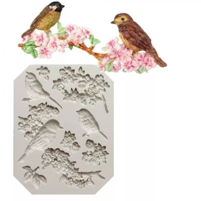AHX(108) - Kaur Birds Flowers Stem Silicon Mold-DIY Fondant Gum Paste Resin Polymer Clay Mould-Cake Decoration-Art Craft Tool