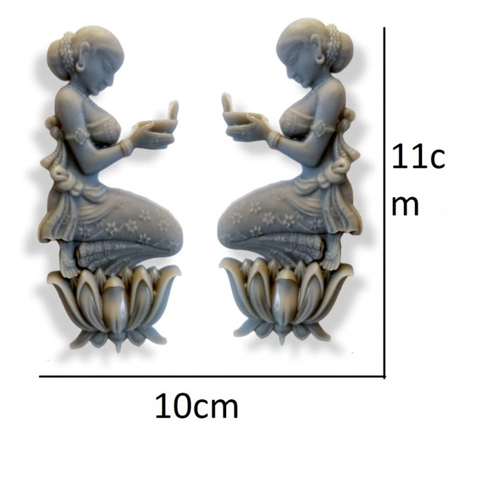 APX(102) - Two Welcome Lady Lotus Sitting Girl with deep Diya Oil lamp Pattern Frame Clay Wax Resin Art and Craft Silicone Mold